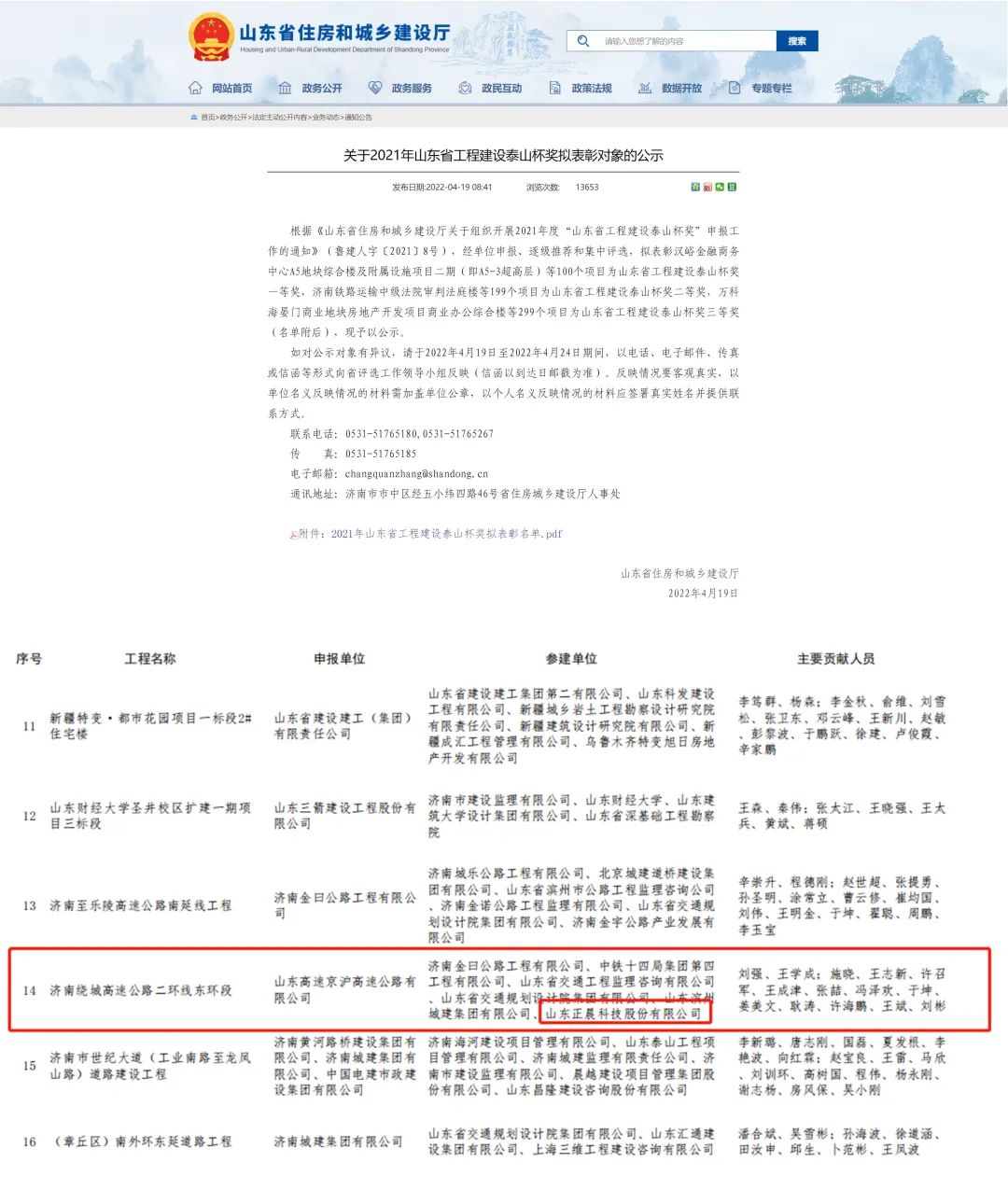 近日,星空官方网页版参建的“济南绕城高速公路二环线东环段项目”荣获2021年度山东省工程建设泰山杯奖!