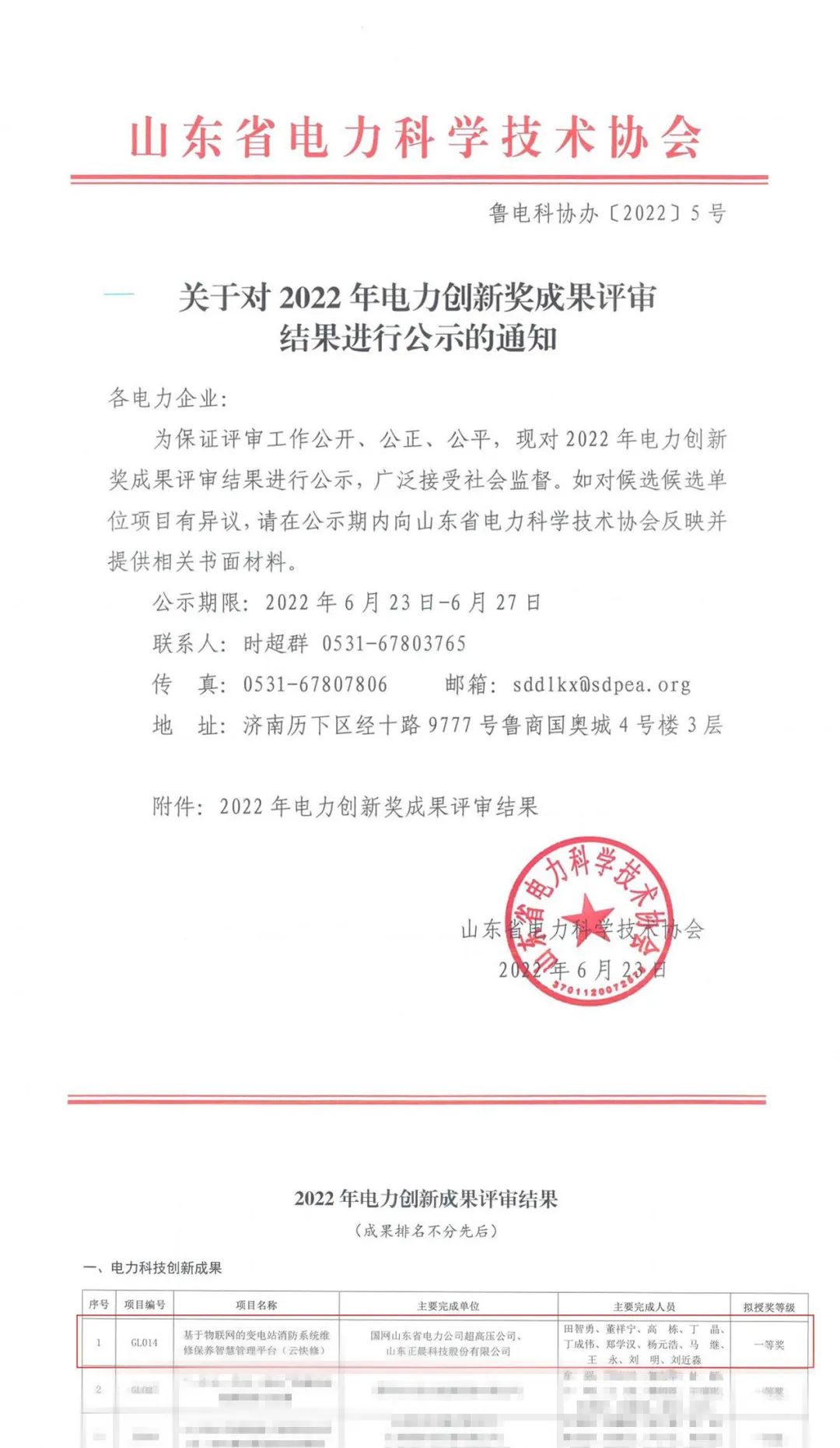 近日,星空官方网页版与国网山东省电力公司超高压公司联合研发的《基于物联网的变电站消防系统维修保养智慧管理平台(云快修)》通过了山东省电力科学技术协会评审,荣获2022年电力科技创新成果一等奖,并获推荐申报中国电力企业联合会2022年度电力创新奖。
